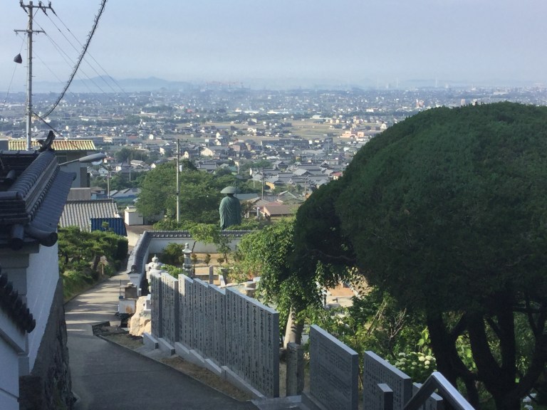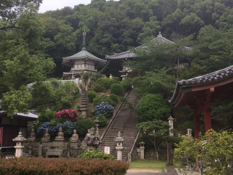 Routes, bruit, chaleur pour arriver au Temple 71 Iyadaniji, le plus accroché dans la montagne mais plénitude assurée, après quelques volées de marches pendant un quart d’heure et celui ci pour terminer (124 marches, j’ai compté…..)