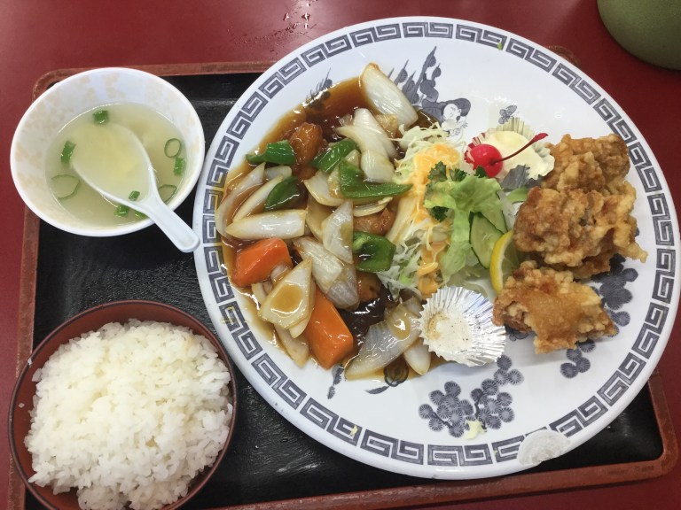 Arrêt obligatoire au restaurant où j’ai dévoré mon plateau car mon équipe, vu l’effort demandé me demande des compensations culinaires. Pour une fois j’ai réussi à manger presque aussi vite que les japonais, d’habitude, je change deux fois de voisins.