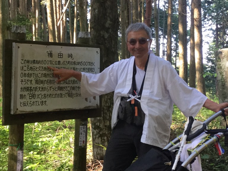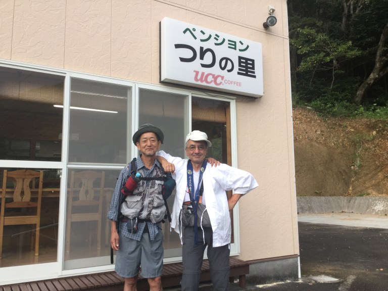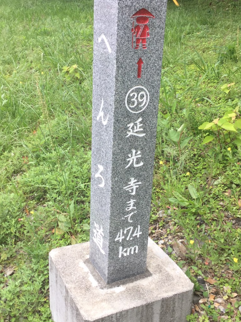 Je ne vous parle pas des rares autres pèlerins marcheurs que nous croisons car nous les côtoyons deux fois maximum et vu mon niveau de japonais et leur niveau d’anglais, cela reste de simples propos. Tout de même, depuis quatre jours, à intervalles réguliers, Kenji parle avec Tad qui lui parle un peu anglais, alors échanges de propos. Tad a déjà fait le tour de l’île de Shikoku dix sept fois, je le marque en toutes lettres pour vous prouver que ce n’est pas une erreur de frappe. Dès qu’il a un moment de libre, il tourne, en tenue traditionnelle de pèlerin. Il connaît tous toutes les haltes, les couchages gratuits, bref un bon vieux routard du circuit. Ce soir il repart à Kochi.