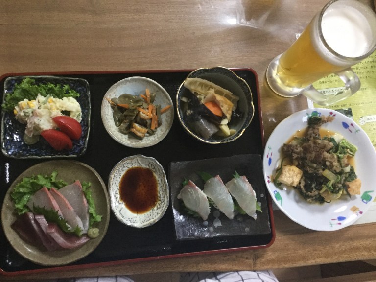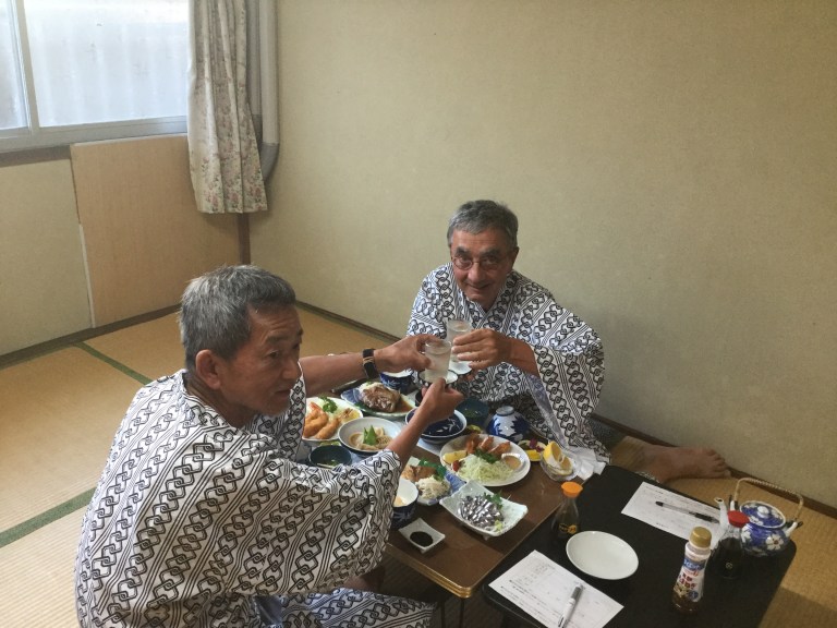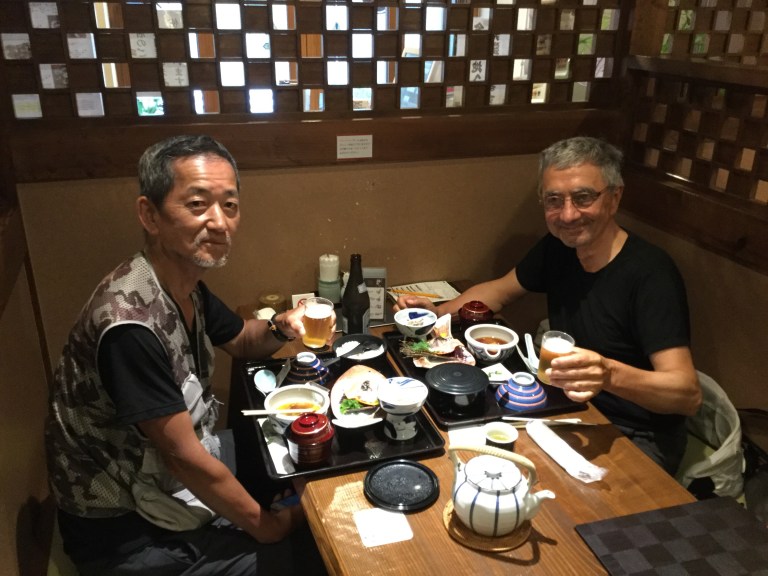 Minshuku du soir espoir, c’est propre, un bon bain, à 17h30, pire que dans les hôpitaux ou maisons de retraite, un bon repas japonais sympa arrosé avec la bière Ashahi et au futon de bonne heure car demain, une sacrée journée en perspective.