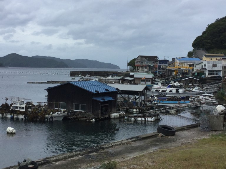 Néanmoins, au travers des gouttes, j’ai pu voir une côte très découpée, avec de larges baies laissant une mer calme propice à la pisciculture.