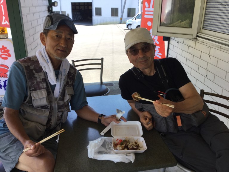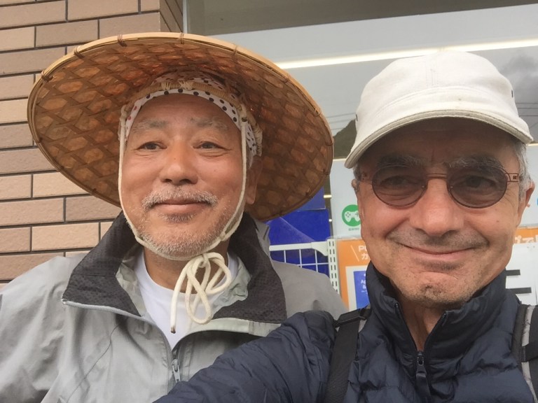 Kenji et moi marchons au même pas avec une certaine synchronisation de nos arrêts pour honorer dame nature et TOTO. Nous essayons de communiquer et cela marche très bien pour se diriger, manger, et nos traducteurs (son téléphone et ma tablette) complètent nos conversations de façon sympa.