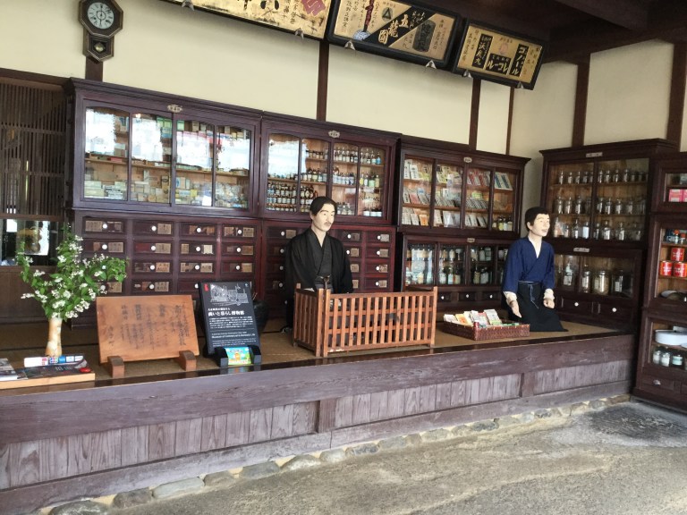 Bonne surprise, la vieille rue fermée hier laisse quand même au matin la devanture d’une pharmacie de l’époque, super cette reconstitution avec mannequins.