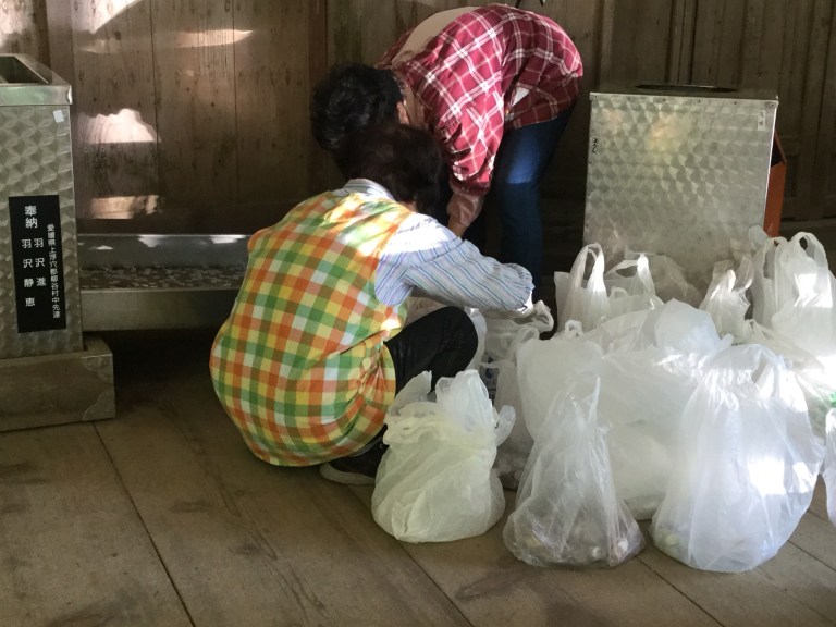 J’allais arriver à notre point de rencontre quand j’ai été pris dans un piège à Henro (pèlerin en japonais). Nous devons accepter les Ossetai (cadeau) sur notre passage sous peine de vexer ceux qui nous les offrent.