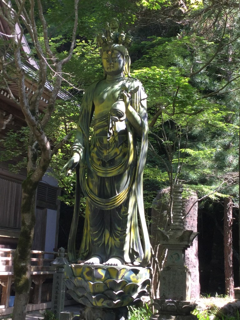 Comme je ne veux pas imposer sans cesse des routes alors que nous avons le choix avec des chemins trekking incompatibles avec ma Chariotte, nous avons décidé que, pour le Temple 40 Kanjizaiji, chacun prend son chemin et nous nous sommes fixés un point de rendez-vous au « combini », c’est à dire une des multiples mini supérette. Dommage que les cafés n’existent pas au Japon, c’est quand même plus sympa.Aujourd’hui j’ai acheté un petit sac à dos car je serai obligé, pour certaines de mes prochaines étapes, de faire du trekking sans ma Chariotte. Elle tranquillement, sera dans les mains d’un transporteur et m’attendra à l’étape suivante. Sans cela, j’étais obligé de rallonger mes étapes de 20 à 30km!