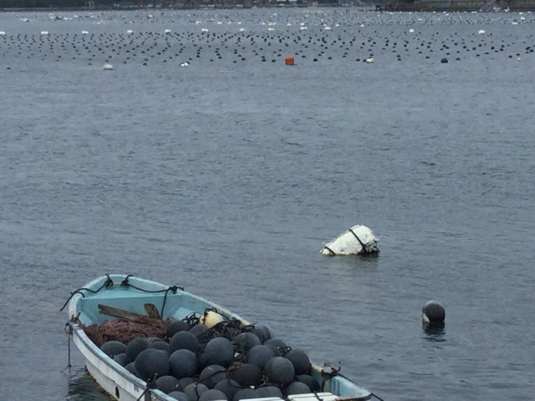 Les maisons des pisciculteurs sont au bord de l’eau, les parcs immergés sont tout proches, comme des champs délimités par des milliers de vouées. J’ai l’impression que leur activité est de surveiller les filets, de donner à manger aux poissons.