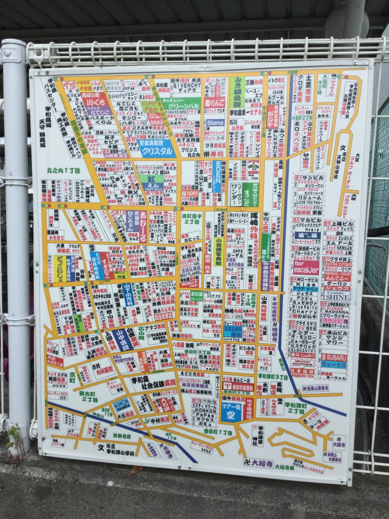 Exemple de plan de quartier en japonais, presque une mosaïque de motifs et couleurs!